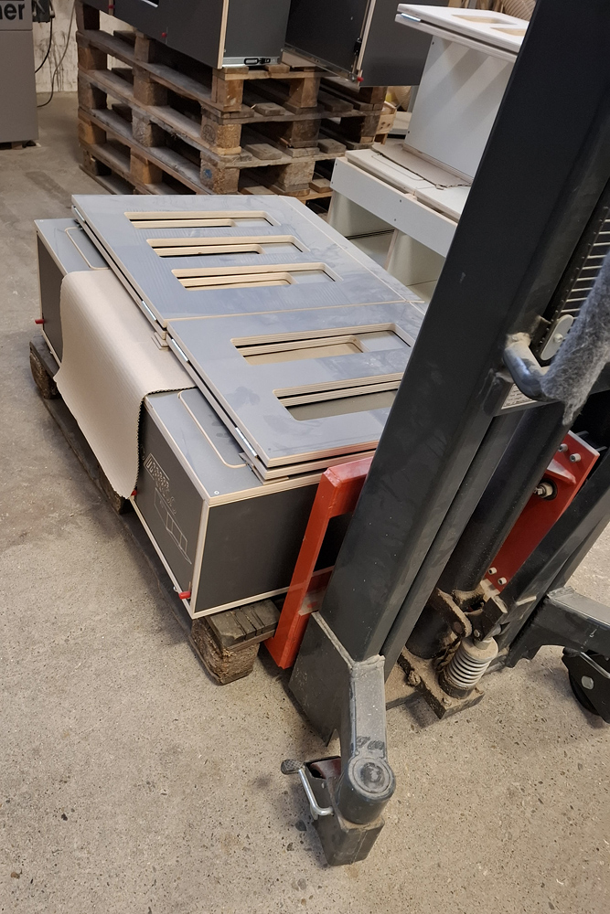 Nach Ankunft in Neubeckum konnte ich sofort meine Cambobox CB TABLE 80 bestaunen. Sie lag noch auf einer Palette und