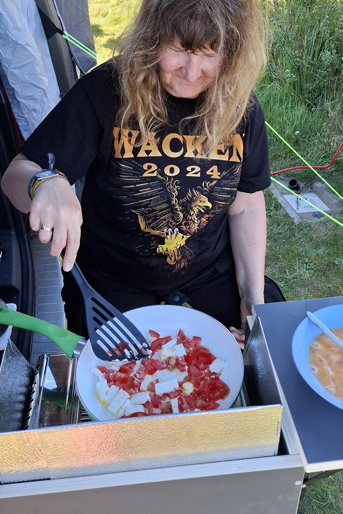 schlafen. Da wir ein sehr geräumiges Vorzelt gekauft hatten, konnte die zweite Person sehr gut dort die Nacht verbringen.