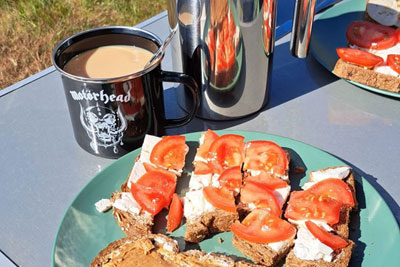nach dem Aufbau der Liegefläche gut erreichen. Der Aufbau mit Tisch ist für mich mit 1,80m Größe ausreichend und das Frühstück hatte am Tisch